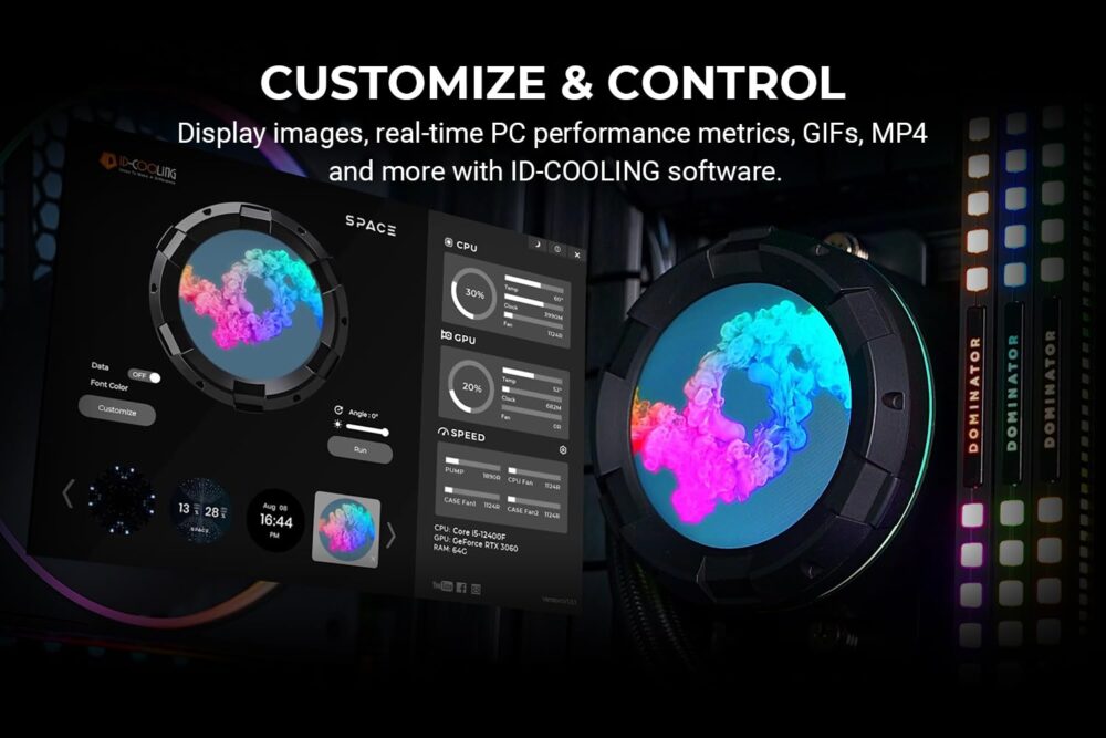 קירור נוזלי ID Cooling SPACELCD SL240 LCD ARGB TDP250W