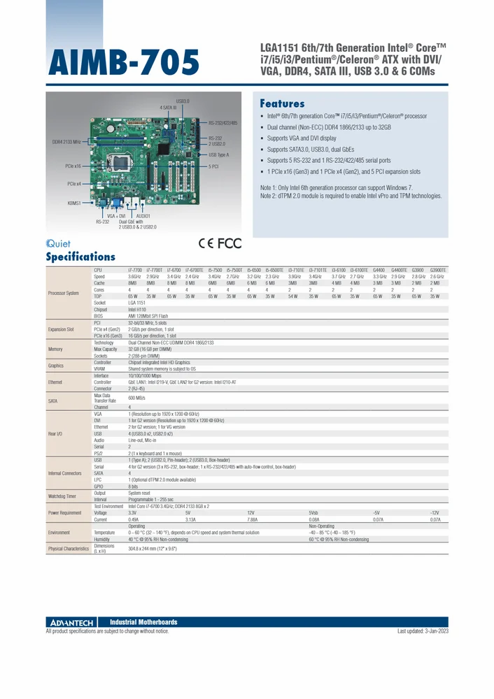 לוח אם תעשייתי ADVANTECH AIMB-705G2-00A1E – אמינות, עמידות וביצועים מתקדמים למערכות תעשייתיות!