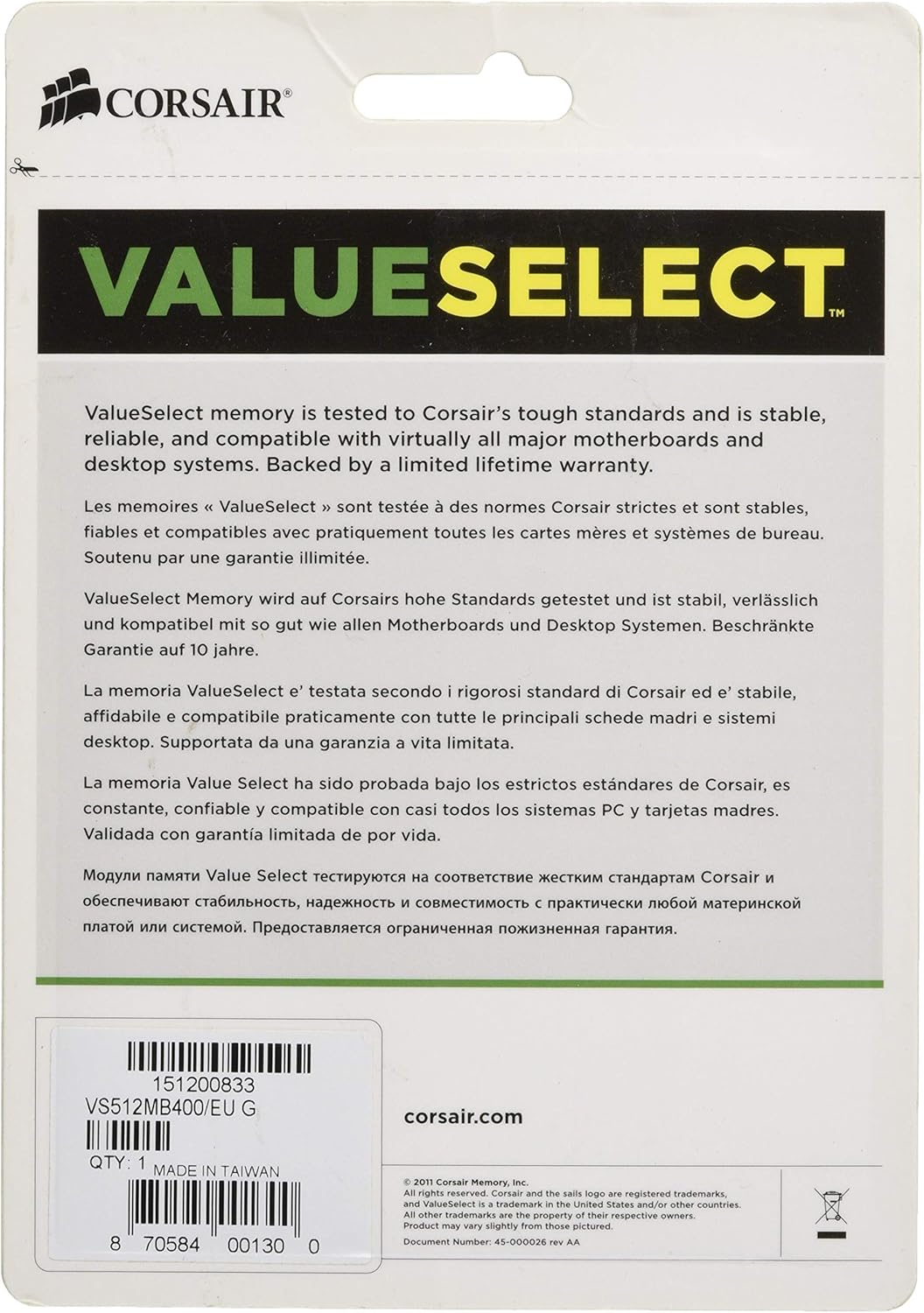 זיכרון Corsair VS512MB800D2 DDR2 512MB 800Mhz CL5 – שדרוג מהיר ואמין למחשב שלך!