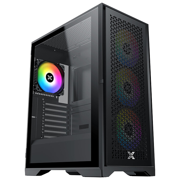 עיצוב מודרני ומרשים: מארז שחור עם פאנל זכוכית מחוסמת בחזית ובצד, להציג את רכיבי המחשב שלך בסטייל.